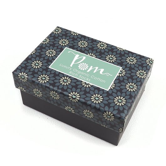 Dog themed triple sock gift box in teal, sage and aqua made with organic cotton and recycled yarn.
